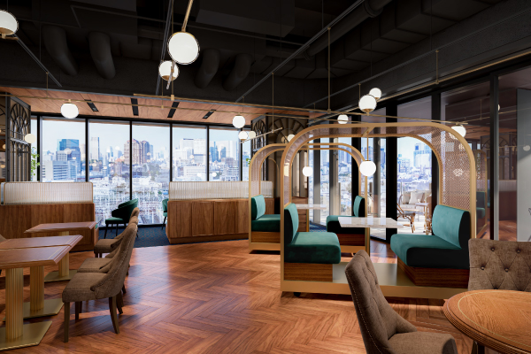 窓が大きく、東京都心の眺望を眺めながら朝日が気持ちよく差し込む店内で、朝のパワーチャージを。