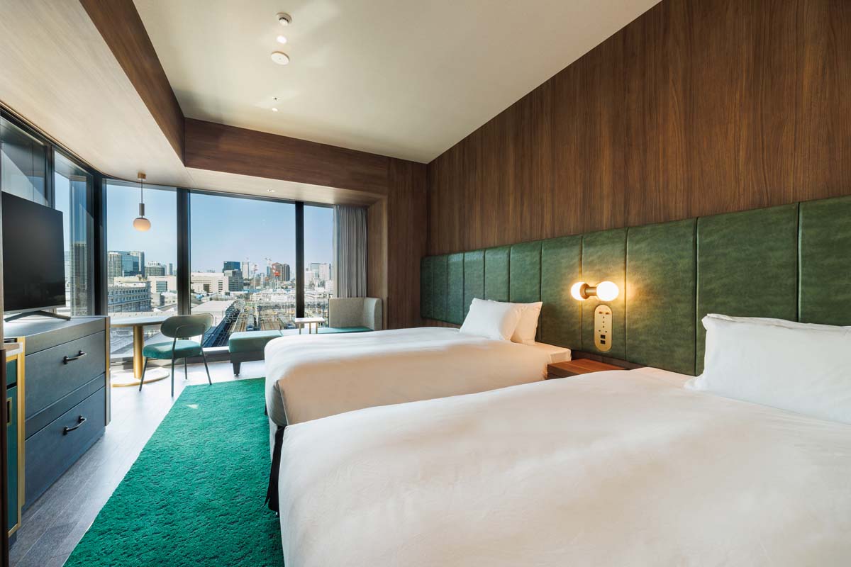 大きな窓から広がる「TRACKS-VIEW」は、昼夜で異なる表情を見せ、旅のひとときを彩ります。室数限定の「バルコニー付き」は