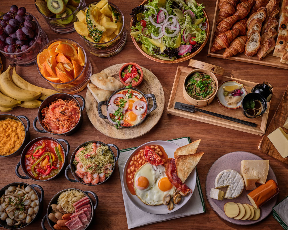 鉄道旅をコンセプトにした、5階レストラン「The TAILOR YARD MAIN DINING」では「世界の朝食を巡る旅」をテーマに、和食を含む3か国の選べるメインプレートに加え、6か国の多彩な料理を取り揃えた約50種類のブッフェをご用意。車両基地を眺めながら世界を旅するような朝のひとときをお楽しみいただけます。