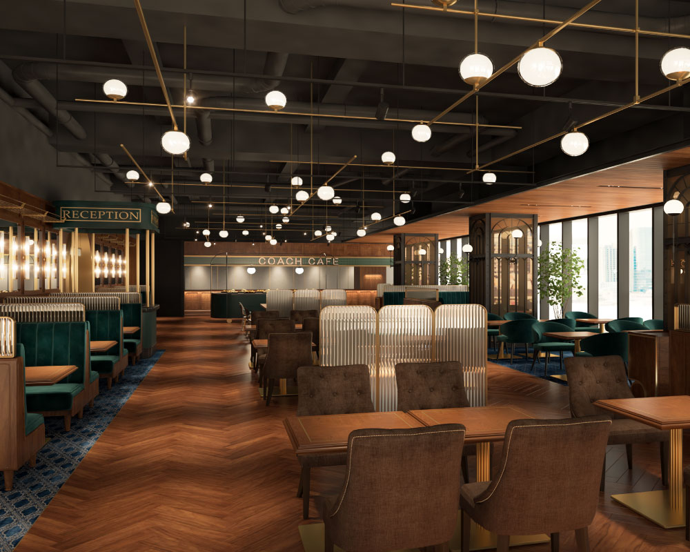 鉄道旅がコンセプトの5階レストラン「The TAILOR YARD MAIN DINING」でご朝食をお召し上がりください。