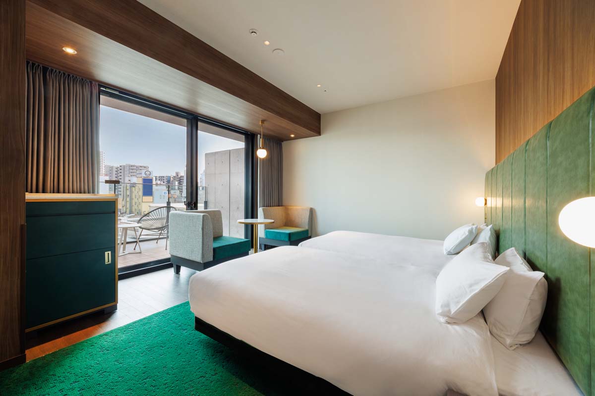 自然の色合いで整えられた落ち着きある客室に加え、外の空気を感じられるバルコニーで、いつもと違うひと時お過ごしください。