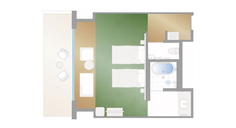 ルームアメニティ | パジャマ、ミネラルウォーター、スリッパ、消臭スプレー |