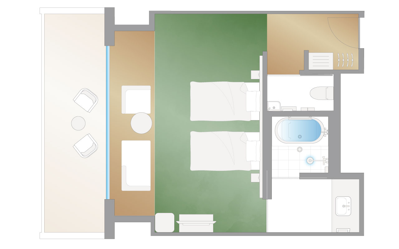 室内設備・備品 | 洗い場付きバスルーム、バルコニー、個別空調、Wi-Fi、セーフティーボックス、加湿機能付き空気清浄機、冷蔵庫、ケトル、ドライヤー、ウォシュレット、ボードゲーム |