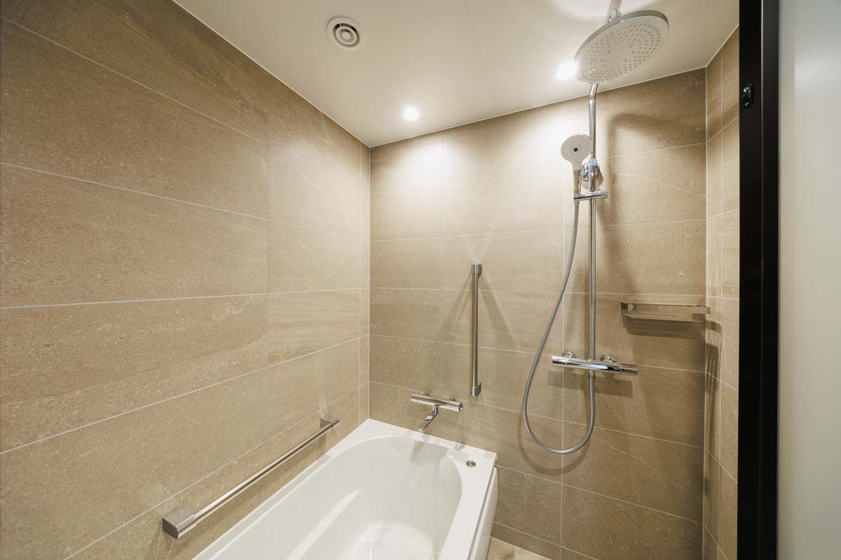 ゆとりある広さに、洗い場付きのバスルームをご用意し、ご家族やご友人とのご滞在にも最適です。