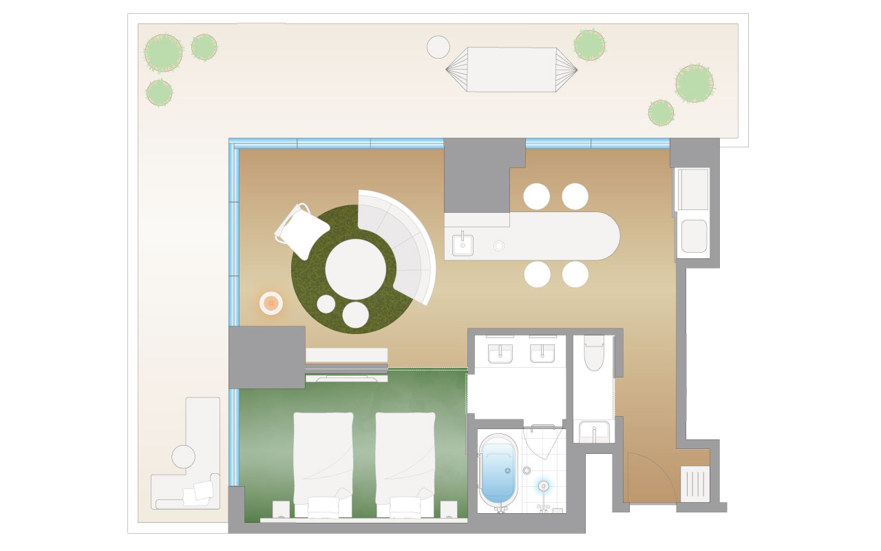 室内設備・備品 | 洗い場付きバスルーム、個別空調、Wi-Fi、セーフティーボックス、加湿機能付き空気清浄機、冷蔵庫、ドライヤー、ウォシュレット |