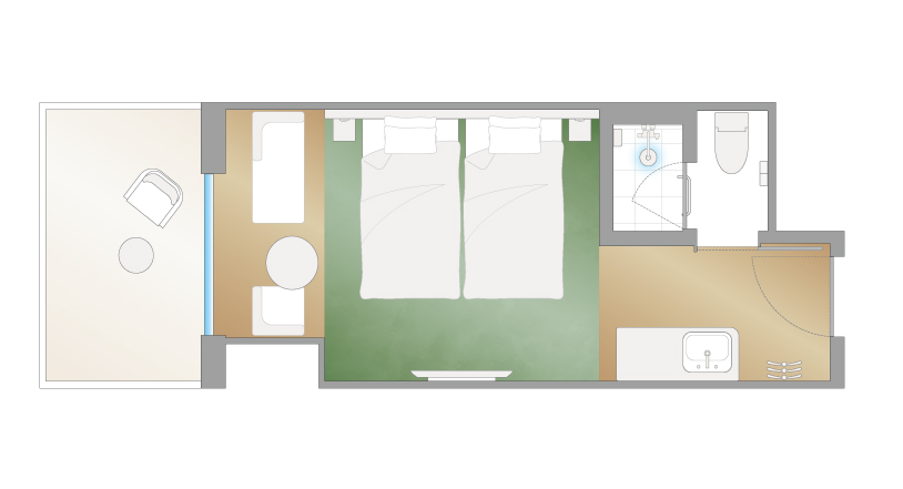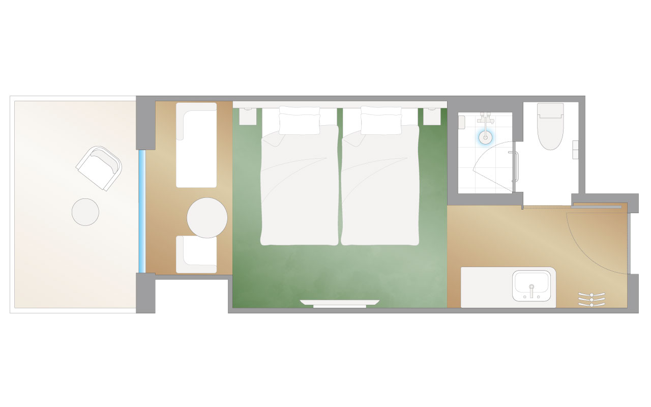 室内設備・備品 | シャワーブース(バスタブなし)、バルコニー、個別空調、Wi-Fi、セーフティーボックス、加湿機能付き空気清浄機、冷蔵庫、ケトル、ドライヤー、ウォシュレット |